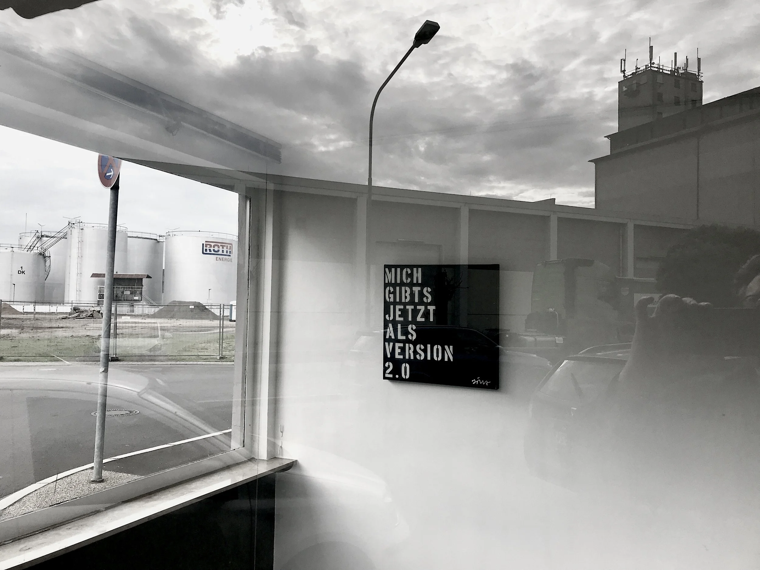 Die 1-Raum-Galerie Schrift und Bild ist die wohl kleinste in Hanau, wenn nicht gar im Rhein-Main-Gebiet. In ihrem Schaufenster im alten Hafenamt Hanau in unmittelbarer Nähe zum Hafenbecken stellt sie immer wieder eine andere Arbeit oder eine Werkgruppe vor. Diese können von aussen betrachtet werden, wann immer die Jalousien oben sind…